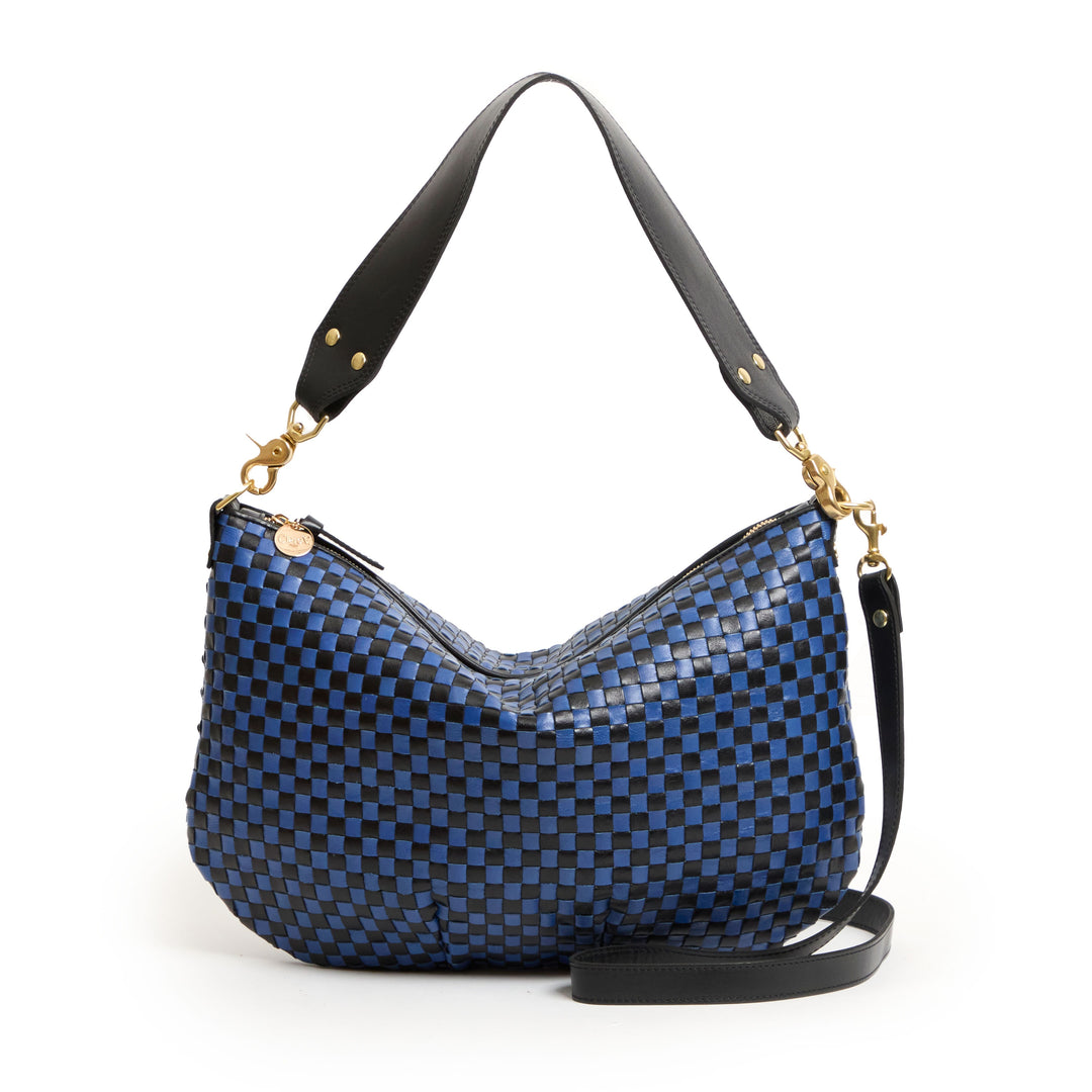 Clare V. - Petit Moyen in Black Cobalt Woven Checker