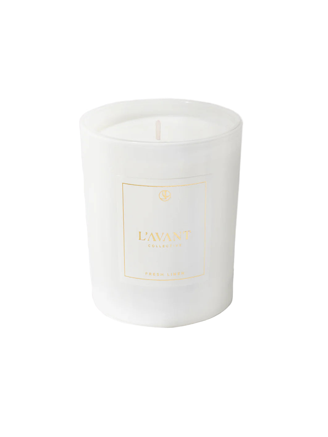 Light up your space with L'AVANT's Fresh Linen Candle. Made with a soy and coconut blend, it's free of harsh chemicals. Delicate ylang-ylang and bamboo blend with essential oils of calming lavender and geranium. Bring a touch of relaxation to any room.