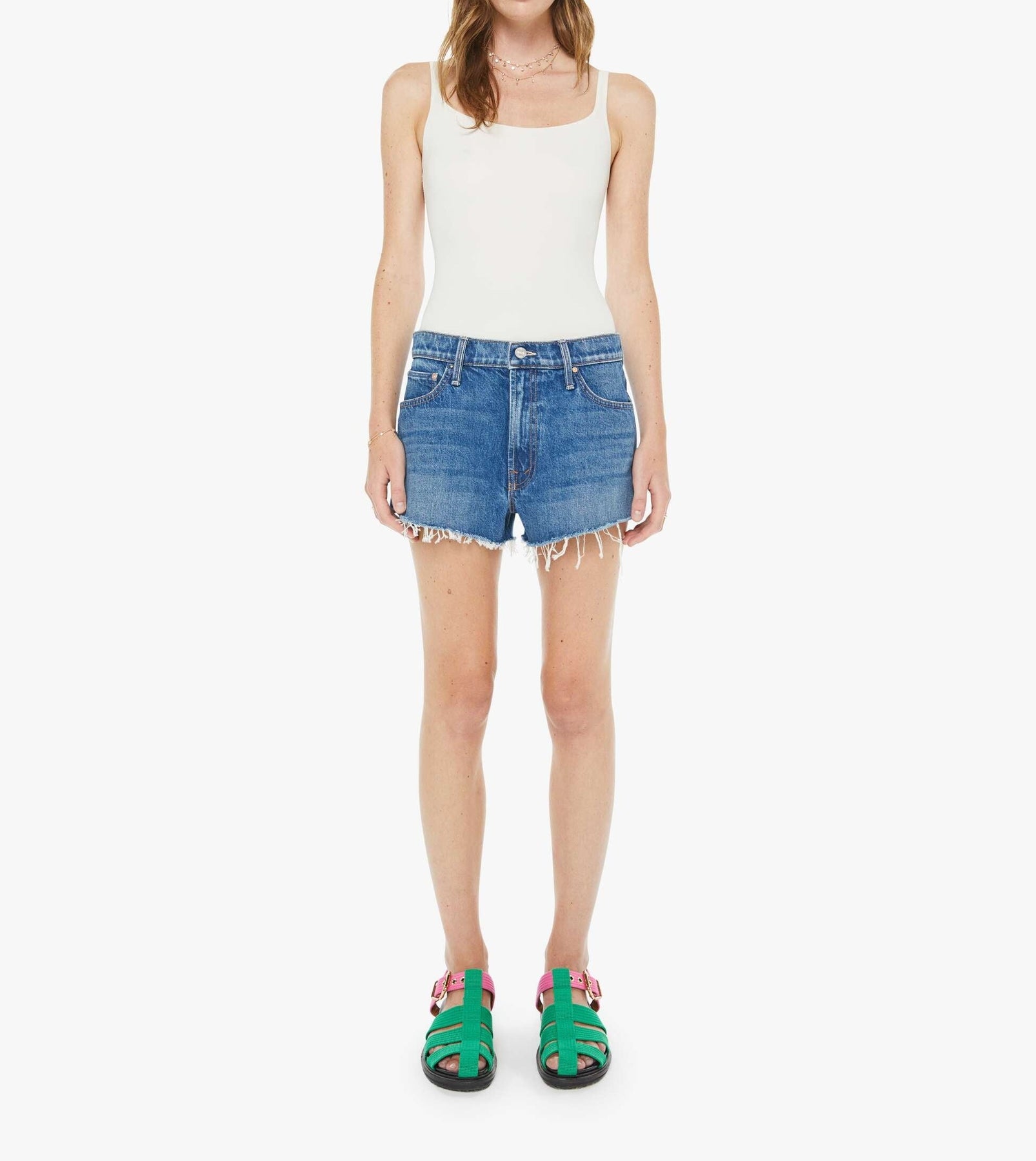 Denim shorts designed to sit lower on the hips with a loose leg, zip fly and 2.5-inch inseam with a frayed hem. Made from rigid SUPERIOR denim, Green Thumb is a classic blue with whiskering.