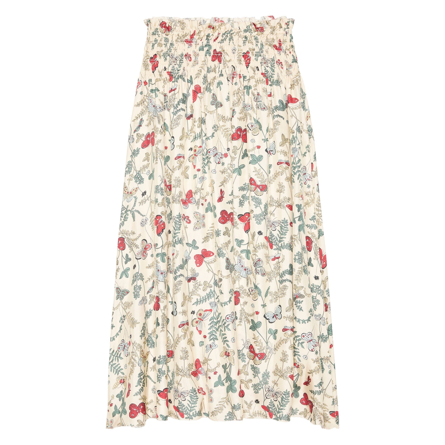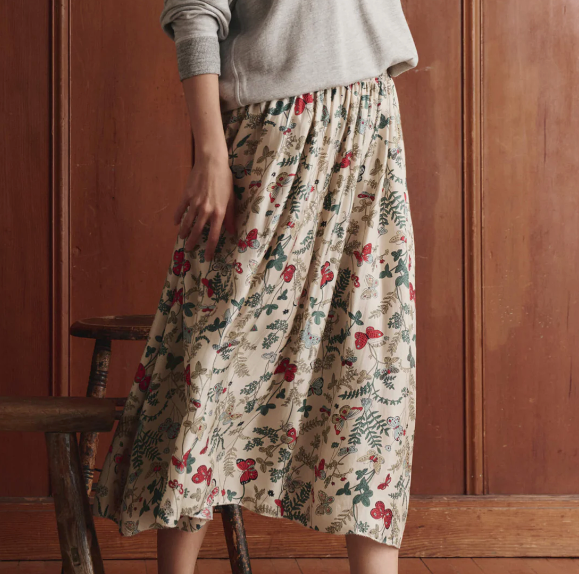 Twirl into spring with this enchanting tiered skirt, where delicate pin tucking meets whimsical floral charm. The fitted waist creates a flattering silhouette that flows into graceful, layered tiers—perfect for dancing through your day. Floating butterfly prints add a touch of magic to every step, while the lightweight fabric ensures effortless movement and comfort. A playful piece that transforms any moment into something special.