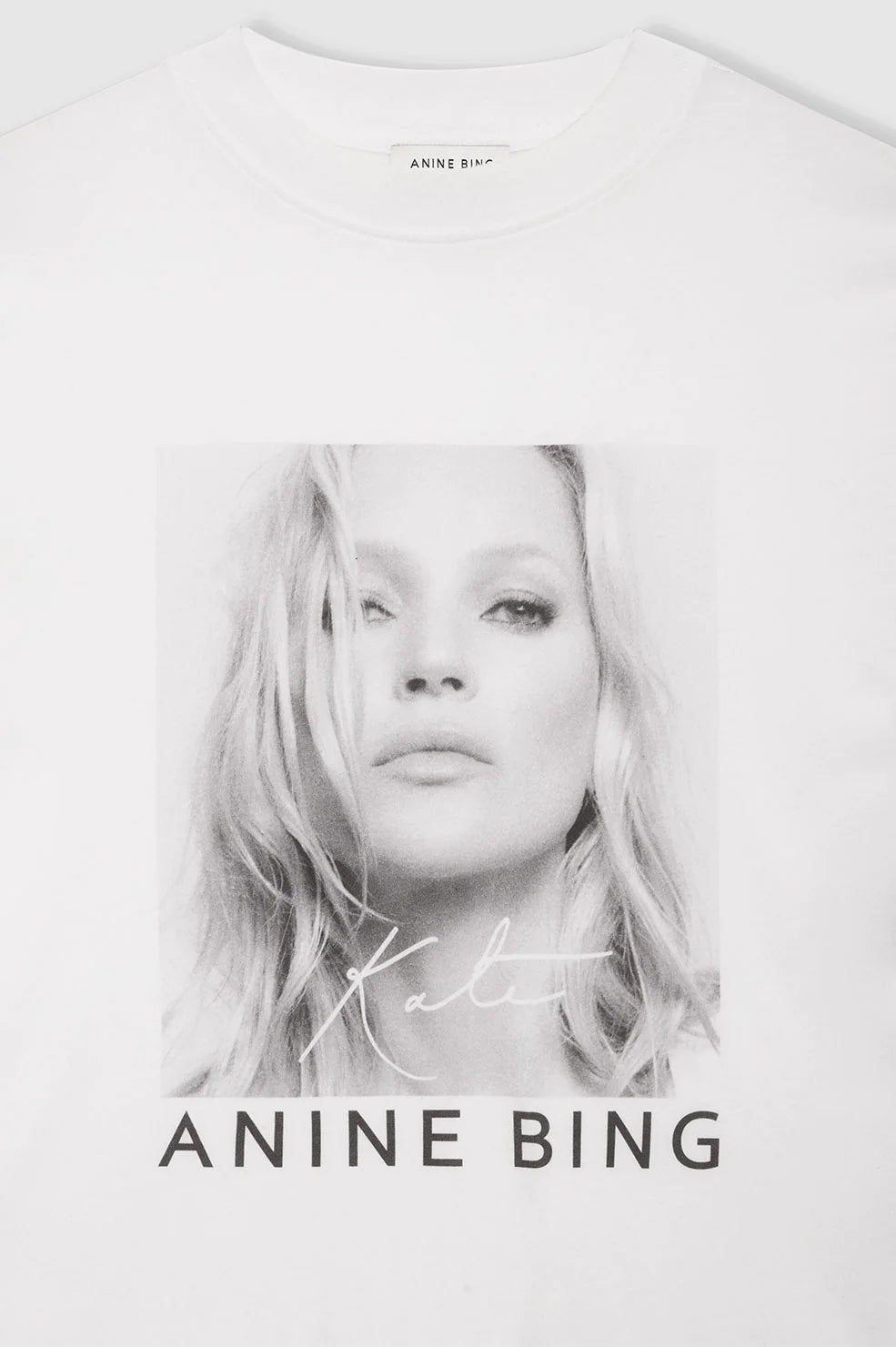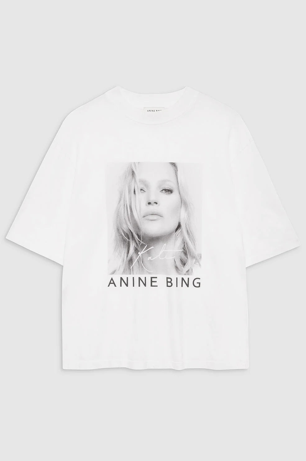 Unleash your inner supermodel with the Anine Bing Avi Tee Kate Moss! Made from lightweight organic cotton, this limited-edition T-shirt features a screen printed image of the iconic Kate Moss. With an oversized, boxy fit and slim neckline, you'll feel effortlessly cool and comfortable. Get yours now!