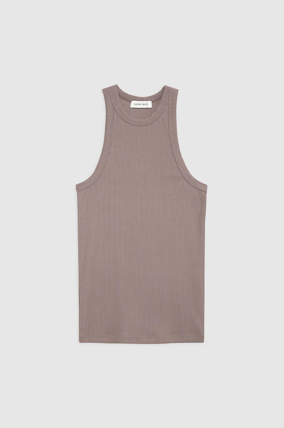 Keep it sleek and stylish with the Anine Bing Eva Tank in Iron. Made from a comfortable cotton-spandex blend, this fitted racerback top features a high crew neckline and armholes for a secure fit. Versatile and effortless, it's your go-to base layer for any outfit. Trust us, it's our best-selling essential for a reason!