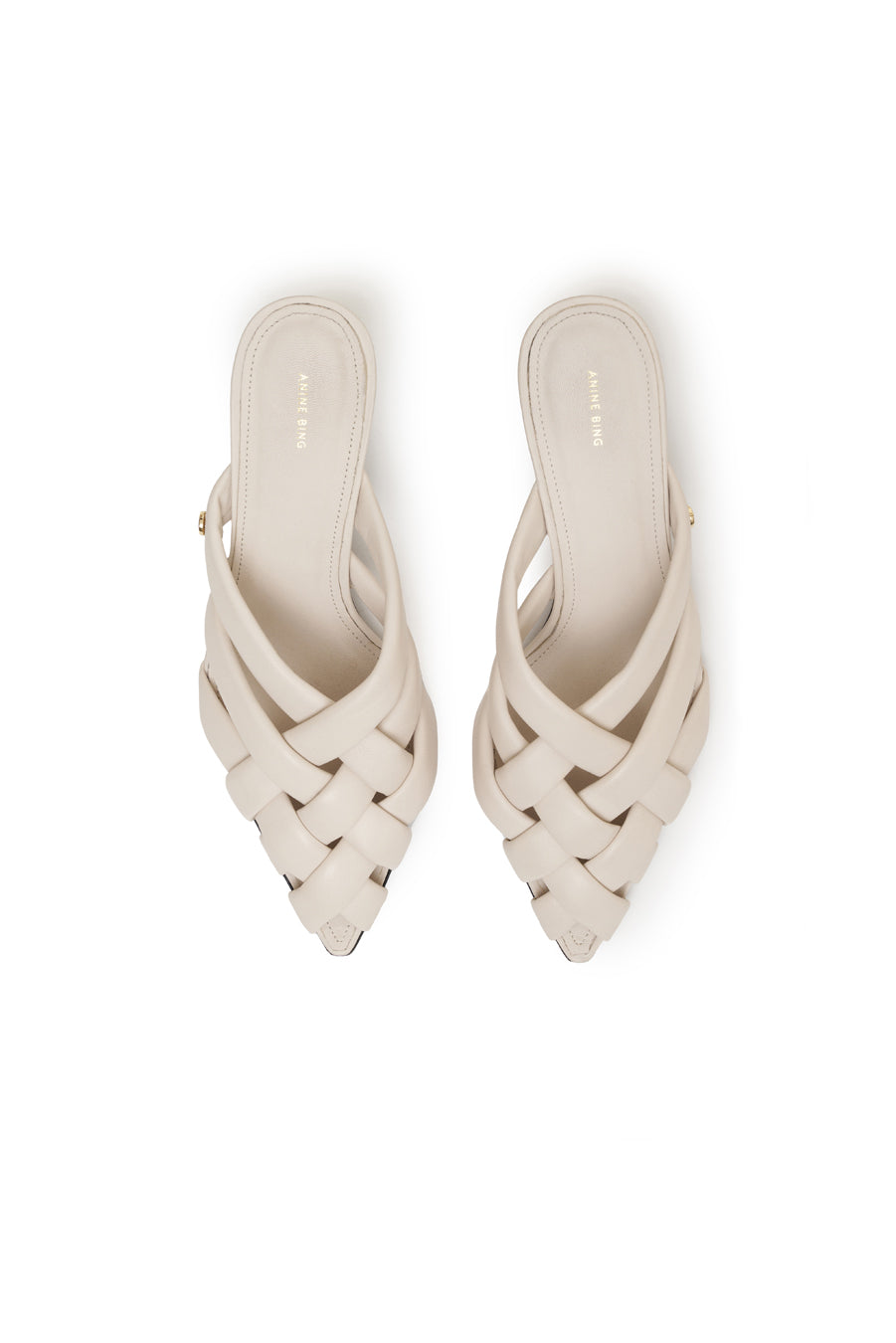 A woven mule with padded straps made from smooth 100% leather in bone.