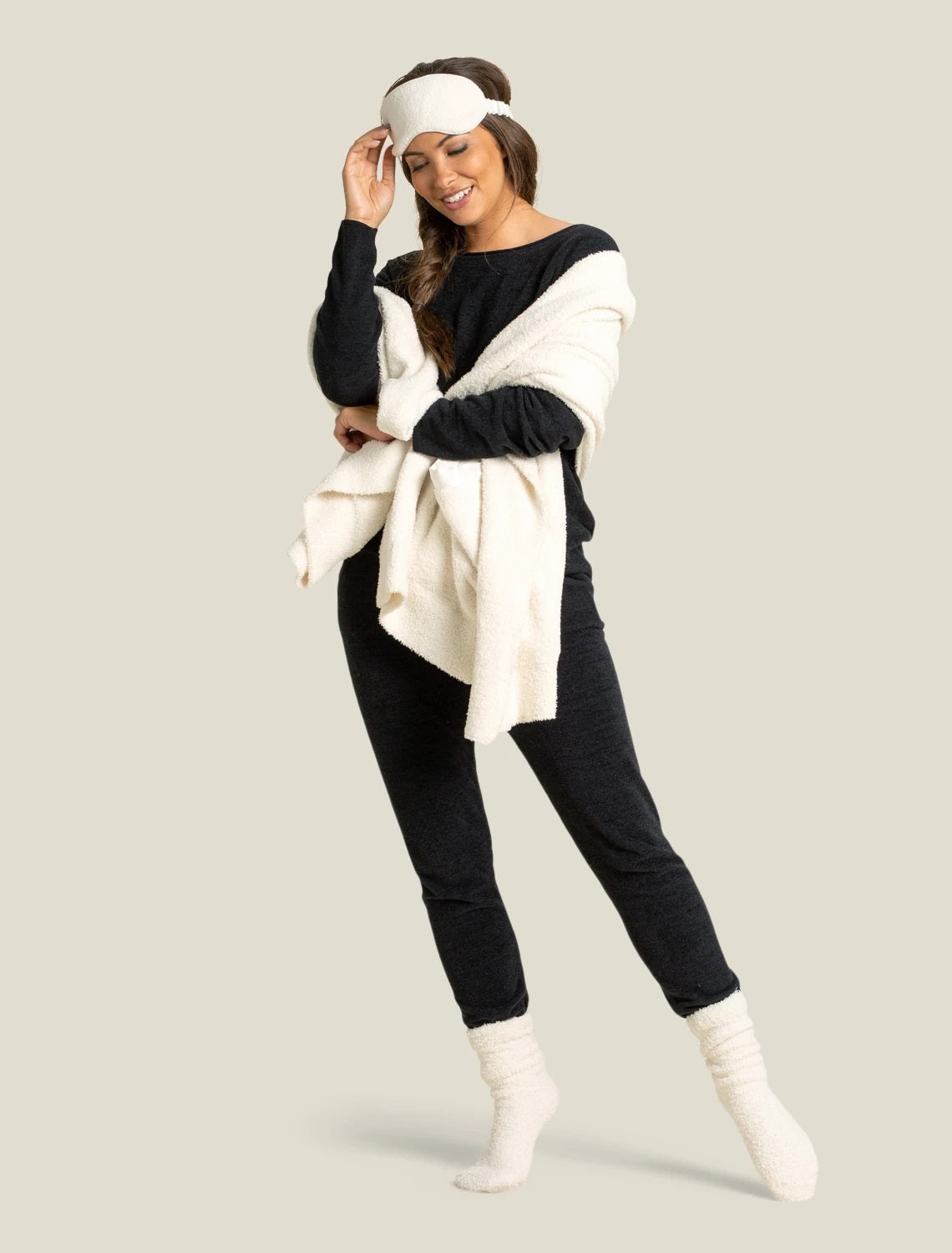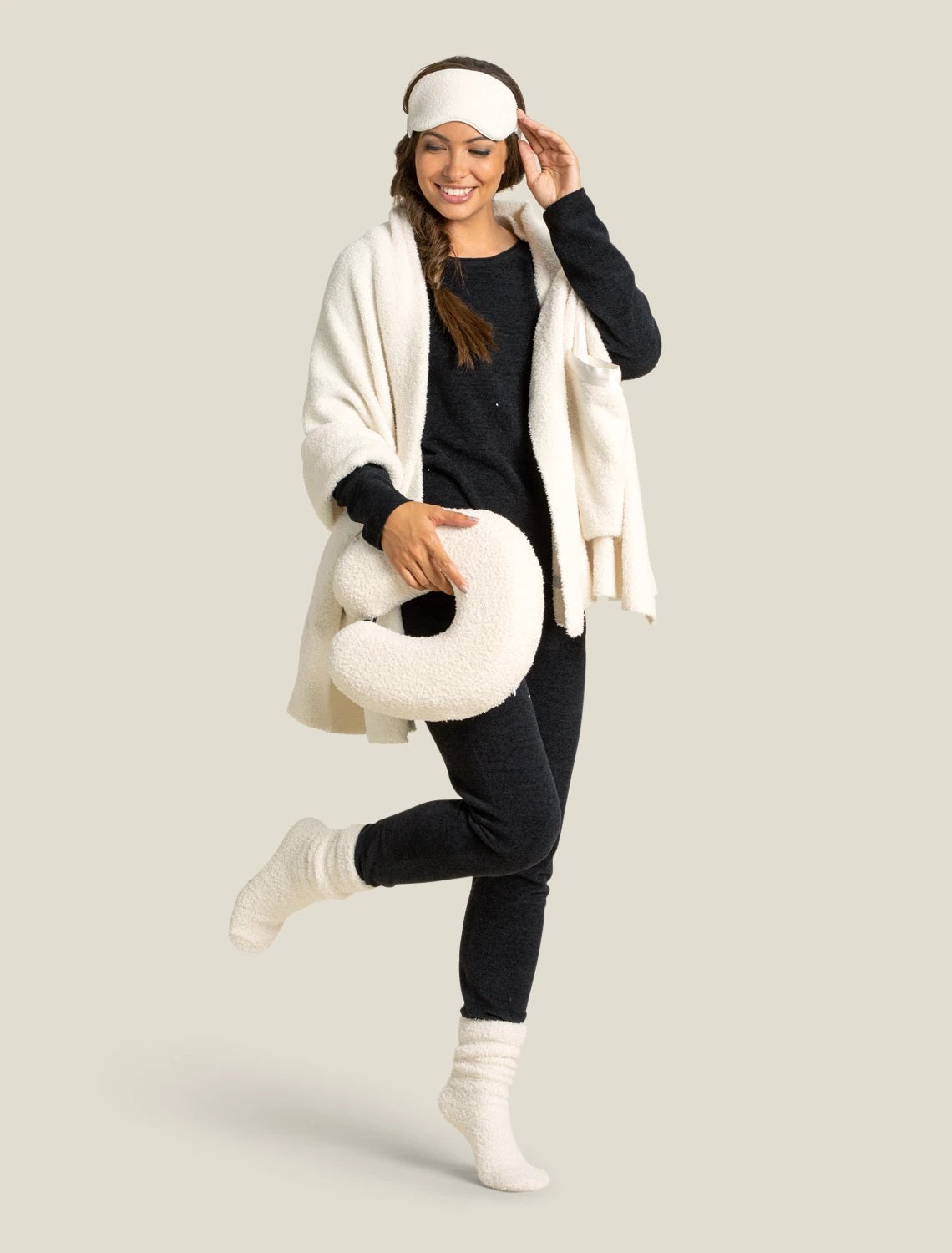 Travel in style with this luxurious Barefoot Dreams travel set. Made from their signature CozyChic material, you’ll be treating yourself to in-flight comfort with the comfy socks and the wrap that can double as a scarf. A satin-lined eye mask ensures you get enough Zzz’s, and the carrying case stores it all.