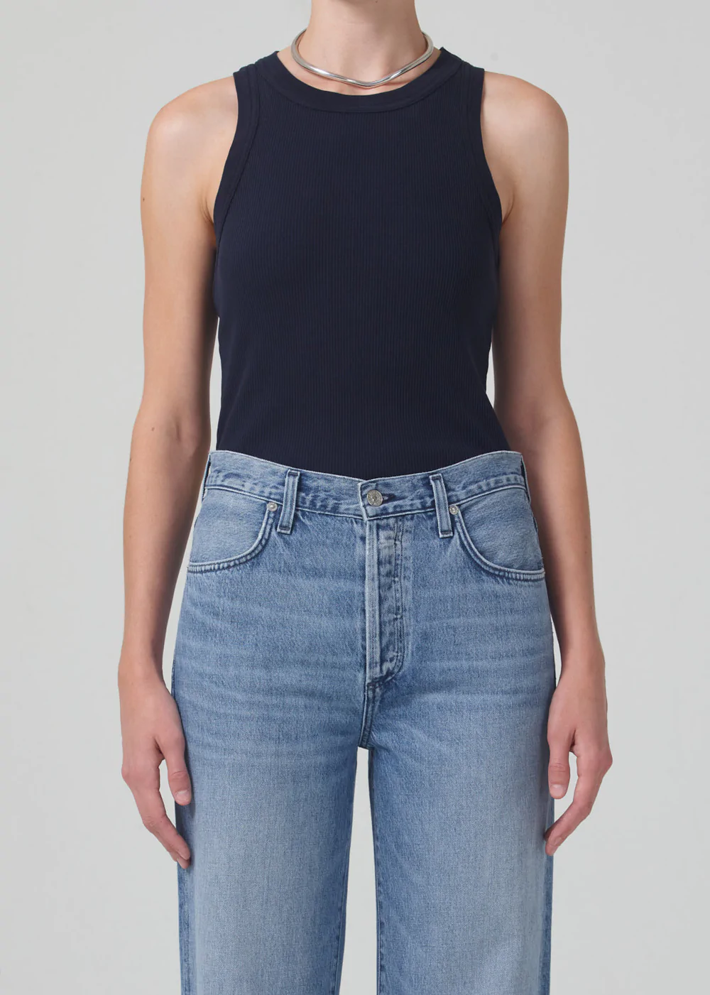 This super versatile tank from Citizens of Humanity offers a soft and stretchy fit that’s designed to flatter. Crafted from a cotton-tercel blend in a rib knit, this sleeveless top has a high scoop neckline and racerback. It comes in a variety of neutral hues that are so easy to pair — try layering yours under blazers or hoodies, or tuck it into your favorite denim or floaty skirts.
