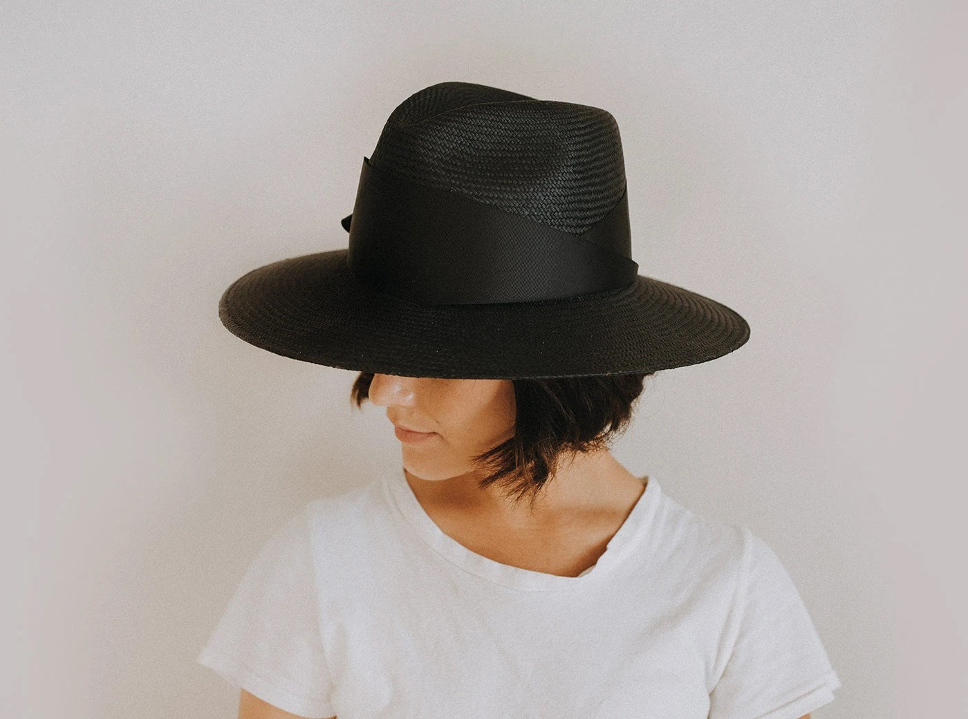 The Gardenia hat from Freya is a beautiful straw fedora, defined by its wide brim and oversized grosgrain band. Each hat is handwoven, resulting in a unique piece that reflects the natural beauty of the raw materials and the handicraft. Add carefree style (plus sun protection) to any look with this outfit maker.