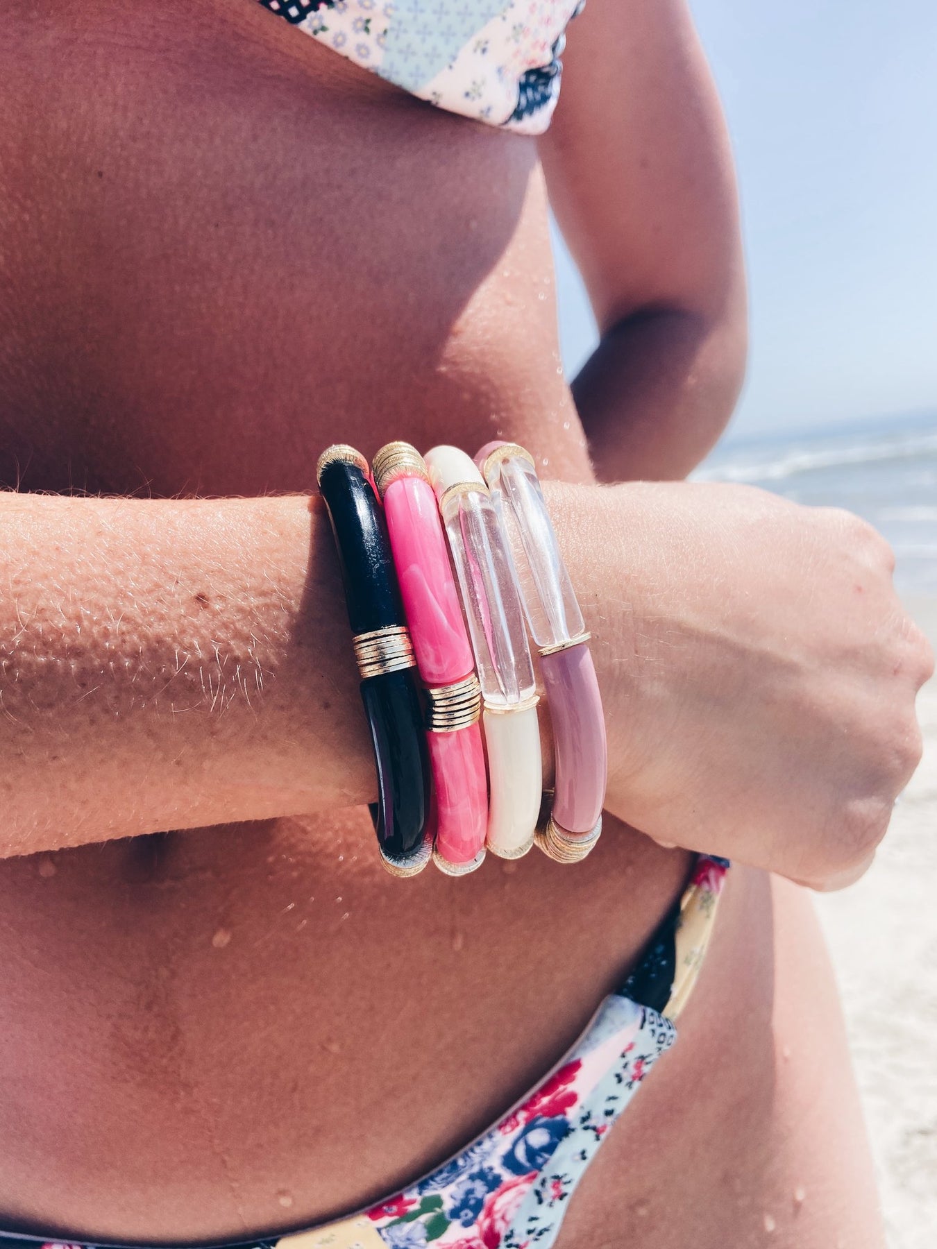 See this bracelet in all available colors to create your curated stack: blue marble, cardinal, clear, gold, marshmallow and tortoise.