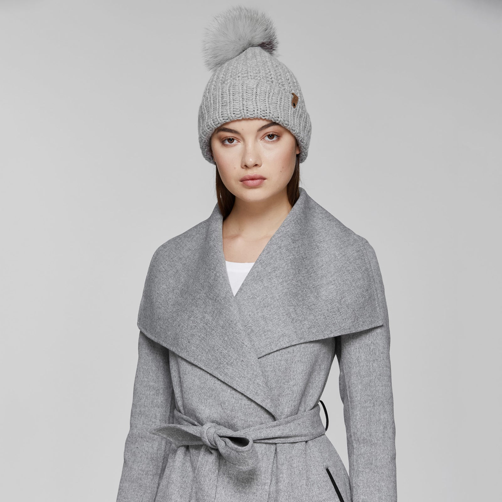 Mackage- Doris Removable Fur Pom Pom Hat Light Grey O/S