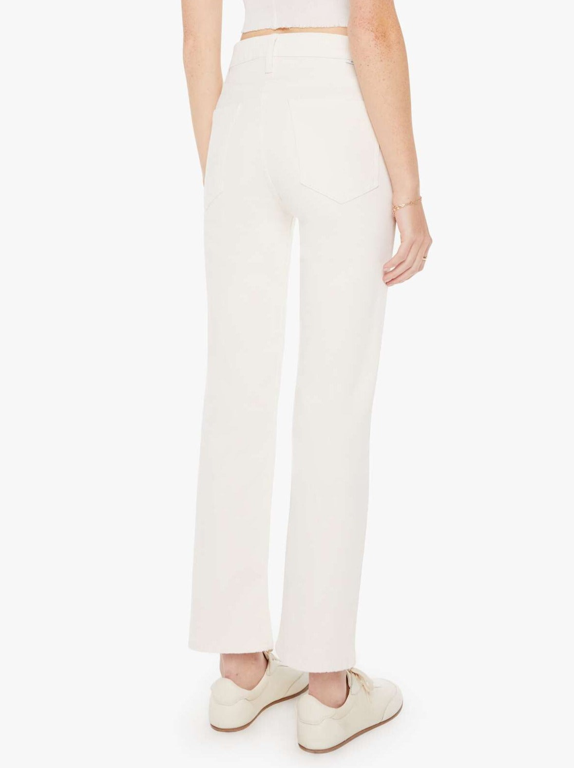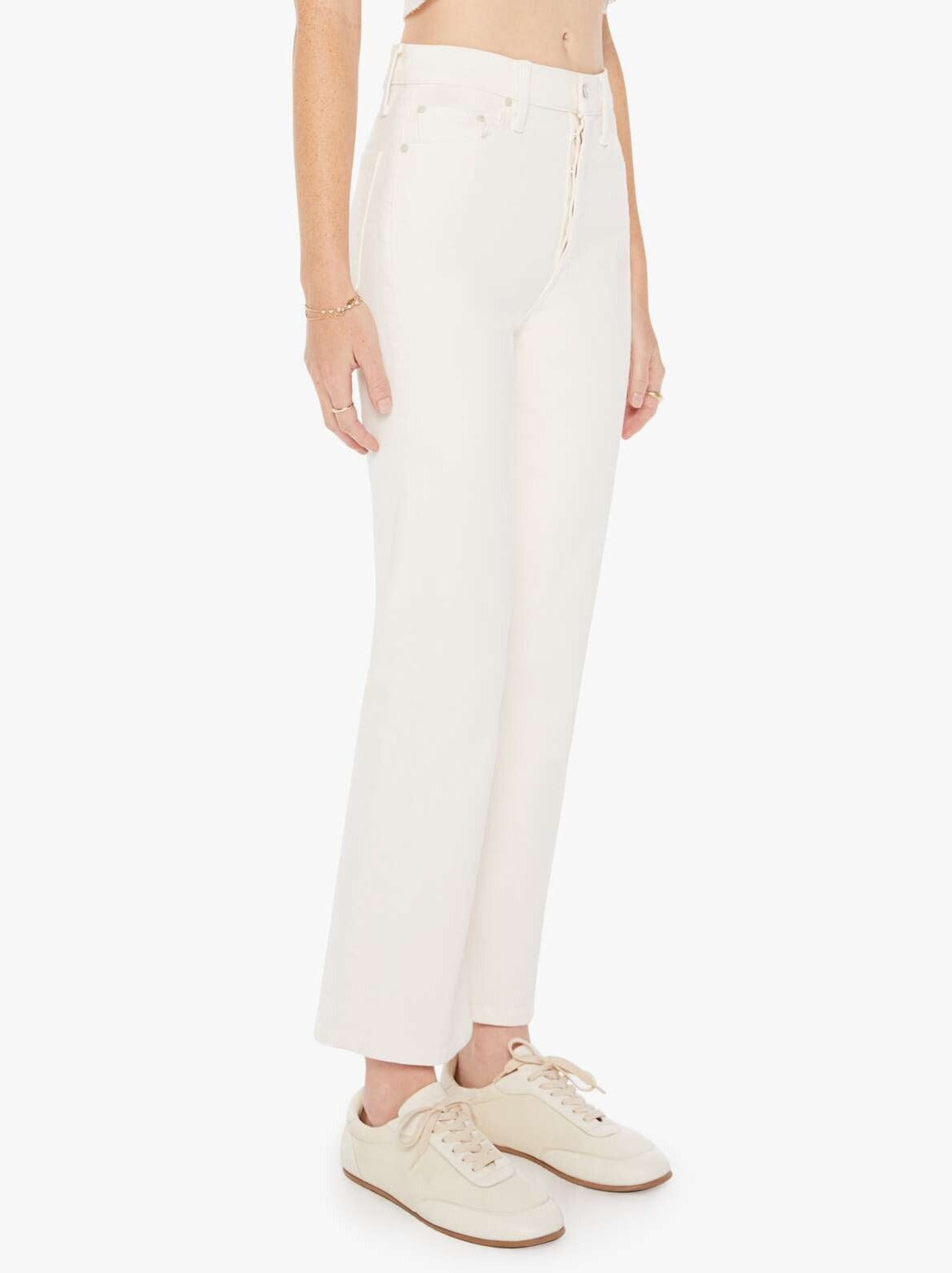 Thank goodness it's flared! This high-rise pant features a button fly and a clean ankle-length hem, all crafted from stretch denim.