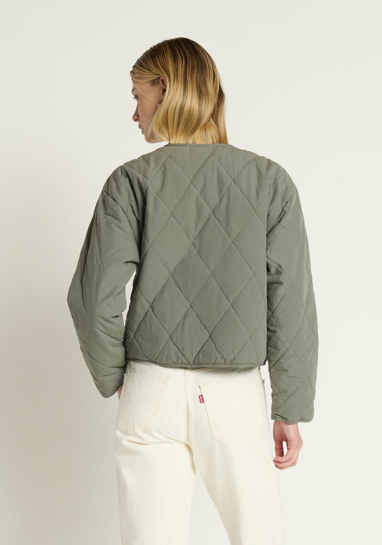 This Nation LTD Aspen Quilted Jacket in Castor Grey features a charming short quilted front pocket secured with a shiny gold button, adding both style and a sneaky little spot for your essentials. Perfect for those who like their outerwear with a dash of flair and a pinch of practicality!