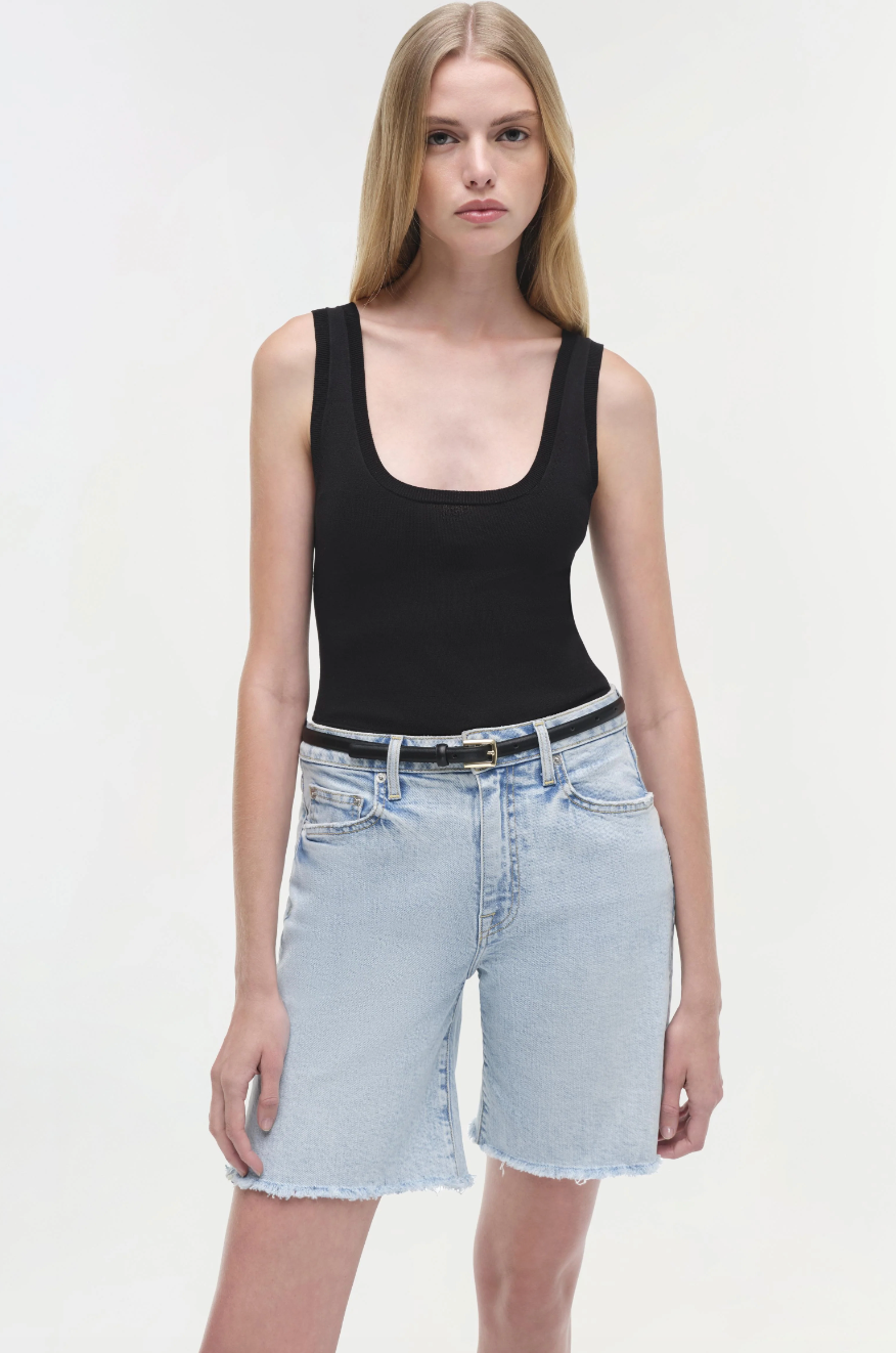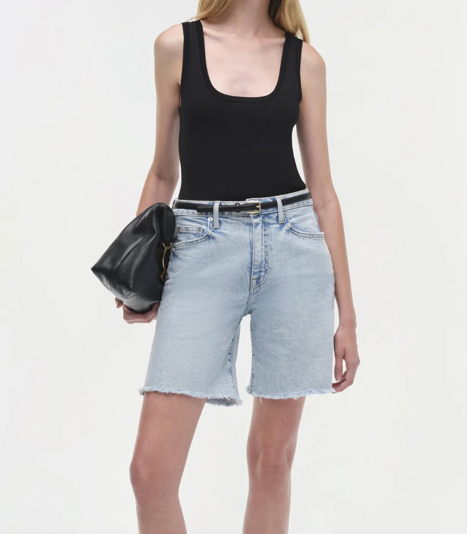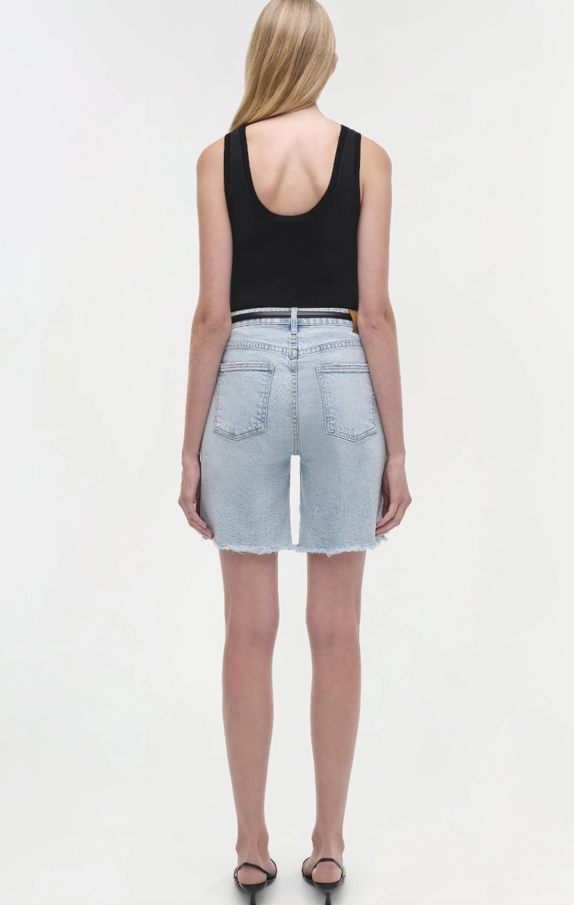 Get ready for some serious comfort and style with the SIMKHAI Dilan Long Short in Del Mar. These denim shorts feature a mid waist and stretchy fabric for all-day comfort. Perfect for everyday wear or a night out on the town.