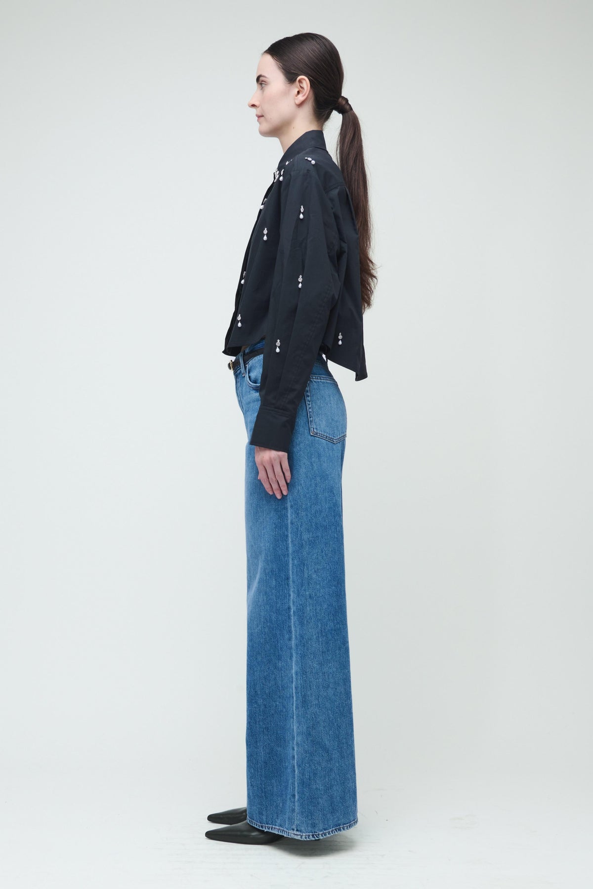 Add a touch of sparkle to your wardrobe with the Simkhai Renata Embellished Cropped Button Down. This playful white shirt shines with delicate rhinestone and pearl details that catch the light with every move. Its cropped fit keeps the vibe fresh and fun, perfect for turning heads and lifting any outfit instantly.
