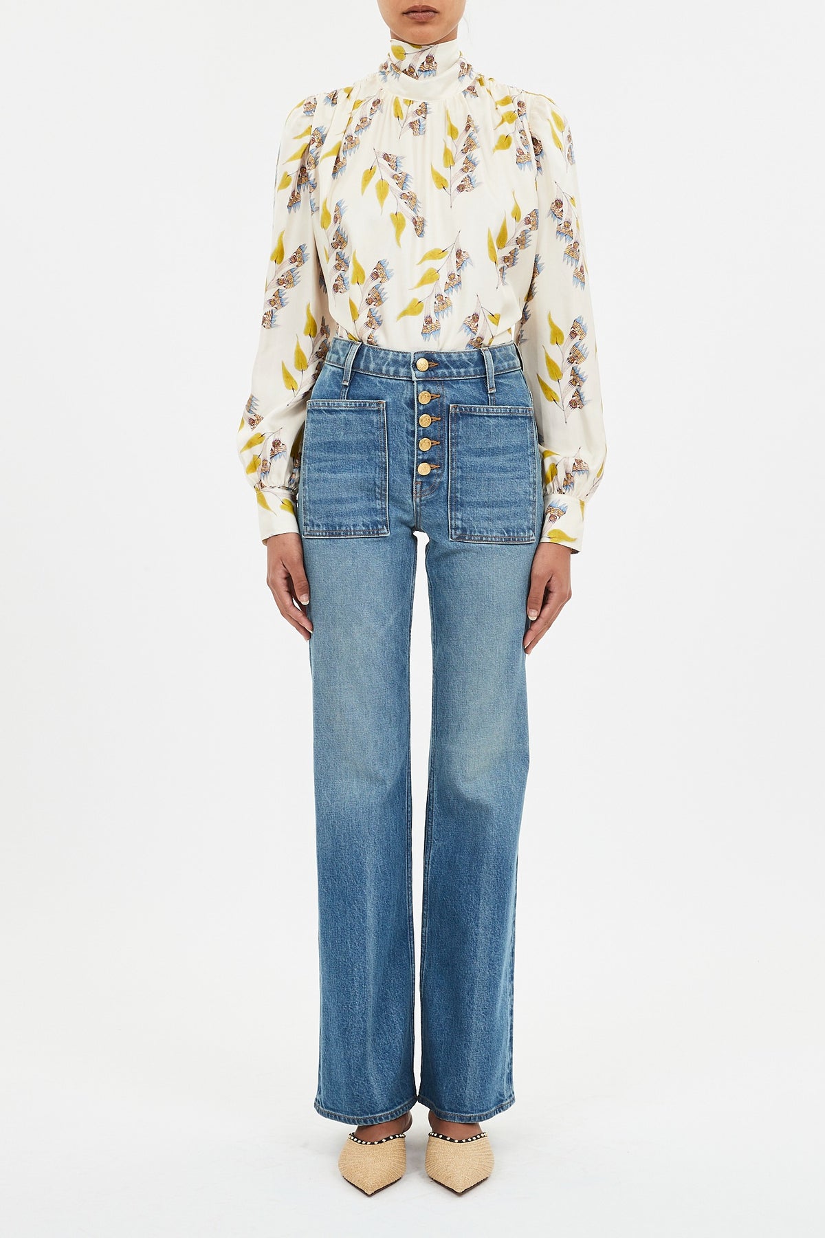Introducing the Ulla Johnson Stretch Lou Kick Flare Jean in Danube—your new denim obsession. These high-rise beauties feature a flattering straight leg silhouette with just the right amount of flare at the hem, paired with a spacious front pocket that actually fits your phone (revolutionary, we know). Crafted with stretch fabric for all-day comfort, they're the perfect blend of vintage-inspired style and modern practicality. Dress them up or down—either way, you'll feel like the genius you are.